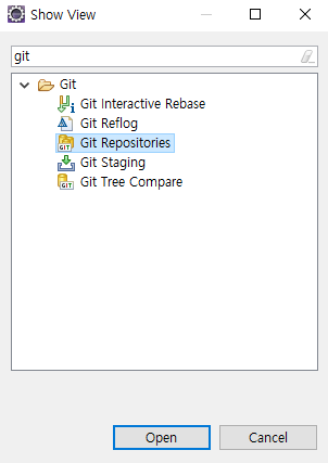 1. 우선, 이클립스 Window → Other → Git Repositories를 선택하여 창을 활성화한다.