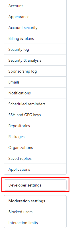 좌측 메뉴에서 Developer setting를 선택한다.