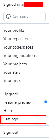 로그인 후, 우측 상단메뉴에서 Settings를 선택한다.