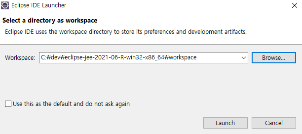 workspace 경로를 잡아주고 Launch를 선택한다.