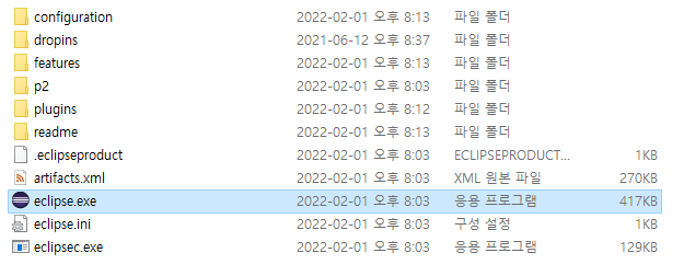 [eclipse.exe] 선택하여 이클립스를 실행한다.