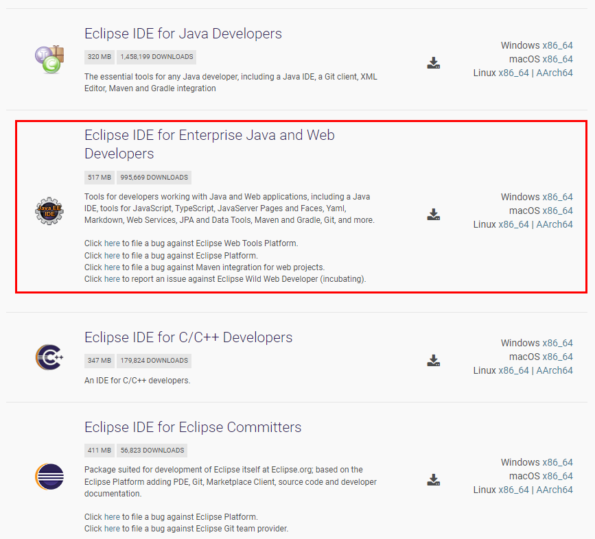 [Eclipse IDE for Enterprise Java and Web Developers] 를 다운받도록 하겠다.