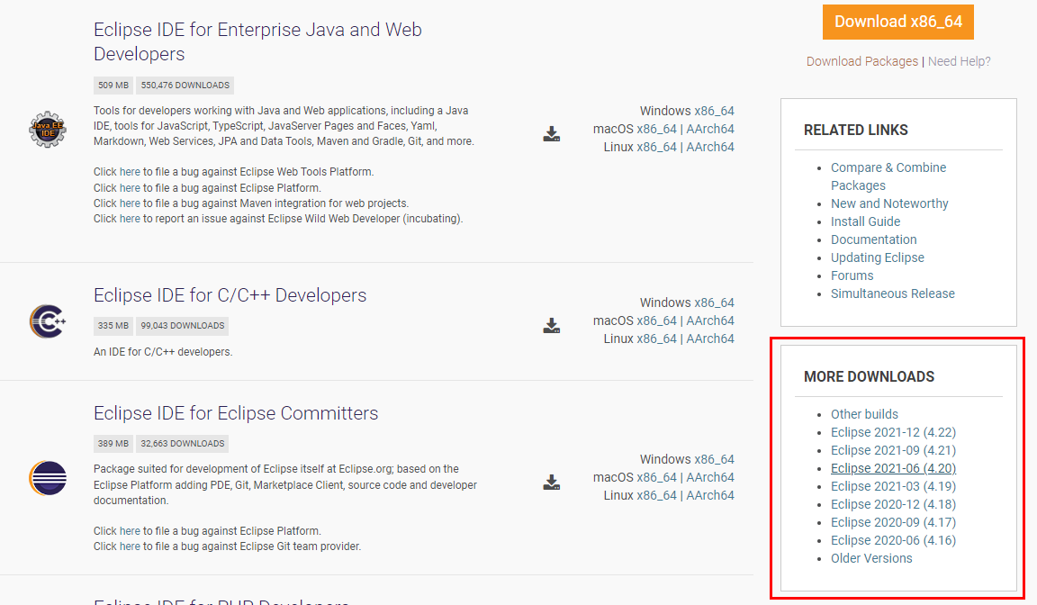 따라서 화면 우측 하단 MORE DOWNLOAD 부분에서 원하는 버전을 선택하자.