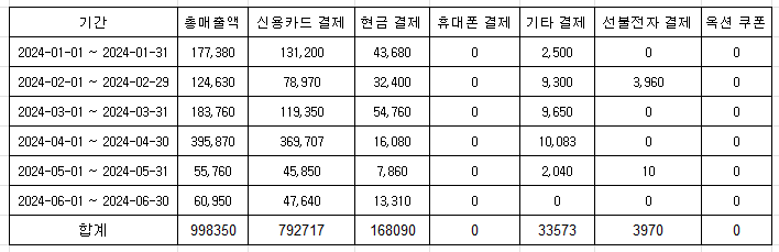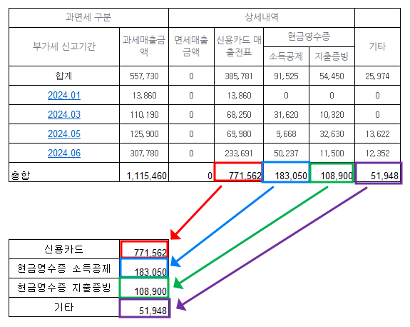 다음은 신용카드 현금영수증 발행분에 대해서 작성합니다.