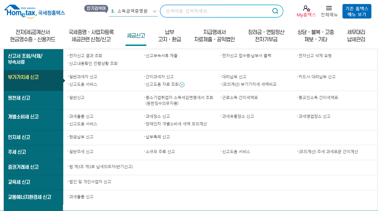 모든준비가 완료되었으니 이제 진짜 부가세 신고를 하러가보겠습니다. 앞서 준비된 내용이 잘 되어있다면 신고자체는 어렵지 않습니다.