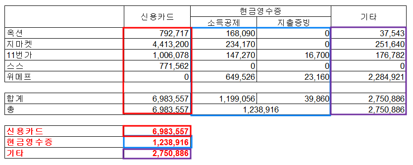 마켓에 상품을 등록하면 고객으로부터 결제가 이루어지고 결제내역이 각 마켓별로 남아있을겁니다. 각 마켓은 우리같은 사업자가 부가세신고를 잘 할 수 있도록 부가세 신고정보를 제공하고 있습니다. 따라서 해당 정보를 가지고와서 엑셀에 잘 정리를 해두면 홈택스에서 신고를 어렵지 않게 할 수 있습니다. 여기서는 옥션,지마켓,11번가,스마트스토어,위메프 총 5개 마켓에 대해서 정리해보겠습니다.