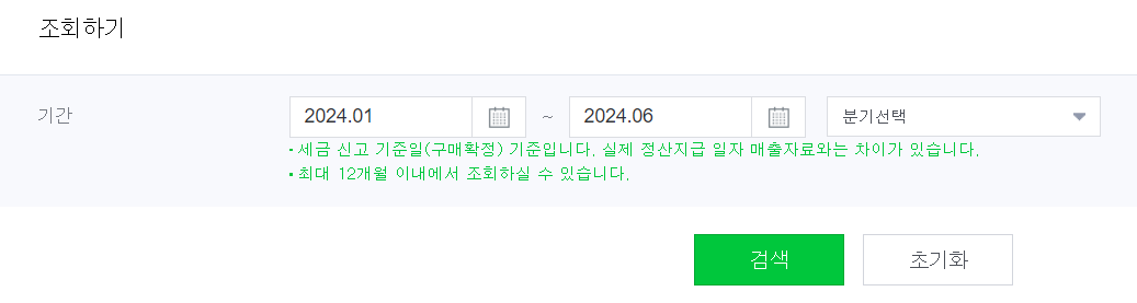 우선 세금계산서 발급분에 대해서 조회하기 위해서 작성하기를 선택합니다.