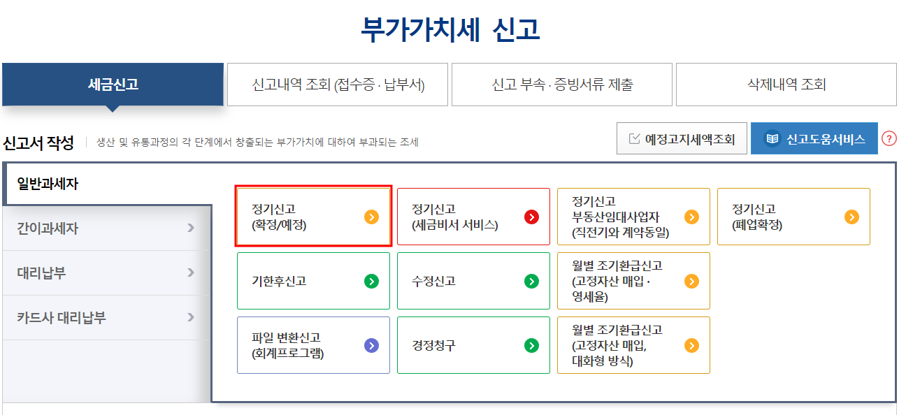 정기신고 (확정/예정)을 선택합니다.