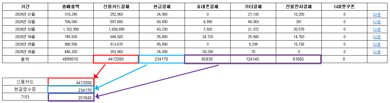 하나. 각 마켓에서 부가세신고에 필요한 자료를 엑셀에 정리해두기