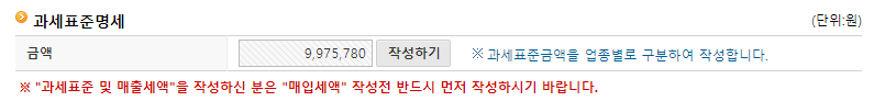 다음으로 과세표준명세를 작성하기 위해 해당 위 버튼을 선택합니다.
