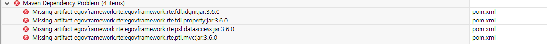 해당하는 egov 파일이 없어서 발생하는 문제임.